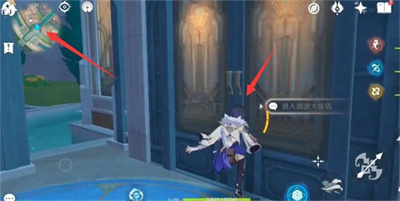 3、在德波大饭店向小地图东北方向行进,发现商店处的桑格内蒂。