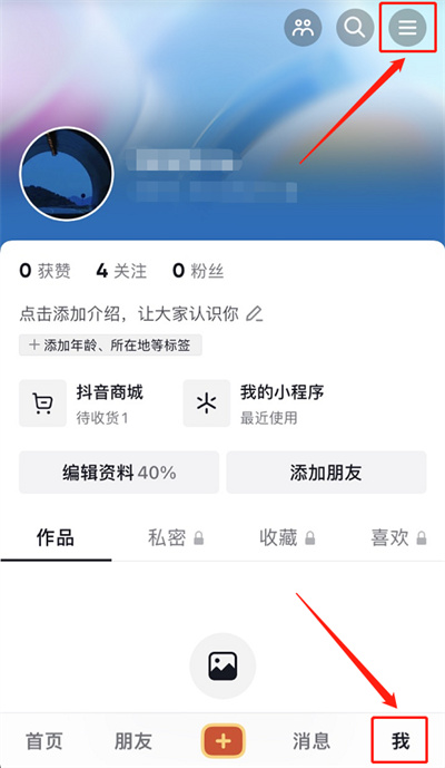 1. 开启抖音,进入“我”界面,点右上角“≡”;