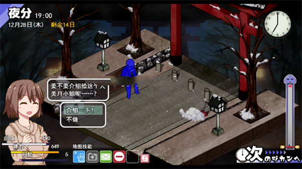 早晨至糖果店、傍晚在山1地图、深夜在公园2地图,满足条件后,次日可寻找美月并获得公寓居住权。