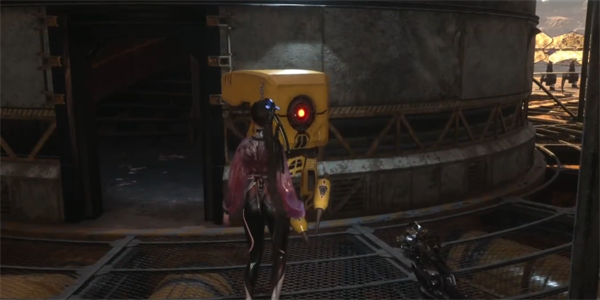 1、和塔台门口的小机器人交谈,从旋转楼梯到第二层平台上。