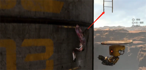 3、沿爬梯上去来到塔的后面,继续往上爬。