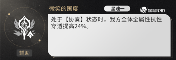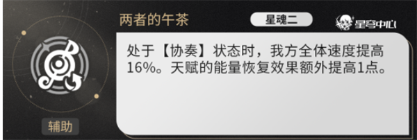 处于[协奏]状态时,我方全体速度提高16%。天赋的能量恢复效果额外提高1点。