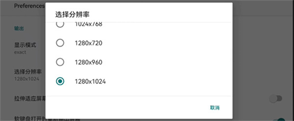 1、进入软件后,在显示模式中选择【自定义分辨率】,设置分辨率为1280x720,手机配置较高的可以选择1280x1024。