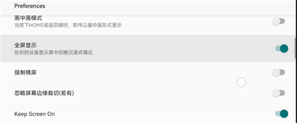 3、打开【全屏显示】、【强制横屏】、【忽略屏幕边缘裁切】和【优先使用键盘扫描码】功能,基础设置完成后即可正常使用。