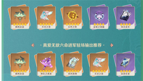 如果当场上输出角色"M乘区”(约大于3.85)较高时,闲云可以优先考虑「昔时之歌」4件。