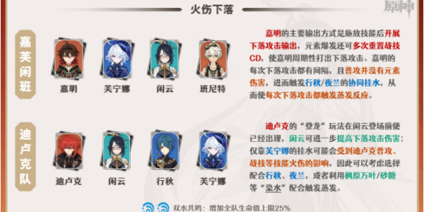 下落队(嘉明/迪卢克+芙宁娜+闲云+班尼特)