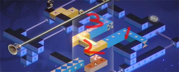 2.接着需移动1和2,参照图示将3移至左边,继续向左移动镜子。