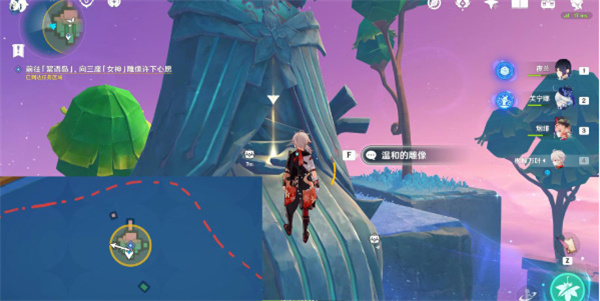 6、朝地图东北方向飞,直达絮语岛并开启锚点,交互3座女神雕像。