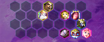4、升级8人口,开始大D卡阵容找齐阵容棋子,猫咪没来之前可用婕拉代替,在杰斯没来之前可用璐璐代替,坦度装备给塔里克;